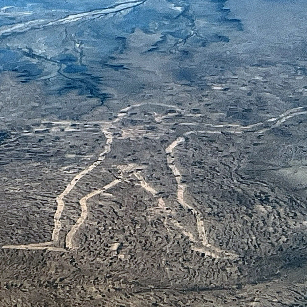 As we leave the shores of the lake behind, we are greeted with an amazing aerial view of the Marree Man. This feature ‘stands’ at 4.2 kilometres tall, measures 28 kilometres around its perimeter, and depicts a hunter with a stick. To this day, there is still no credible information known about the individual responsible for creating the world’s second largest geoglyph, located just on the outer banks of Kati Thanda – Lake Eyre.
