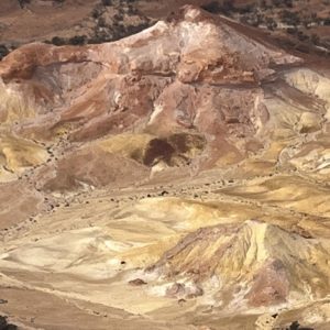 Arriving in William Creek, population 15, we have the opportunity to fly on a local flight, to Anna Creek Painted Hills for morning tea. weather dependant. This is a rocky outcrop of large and small hills, which emerge out of a flat, desert landscape. The hills are approximately 20km by 18km in size.